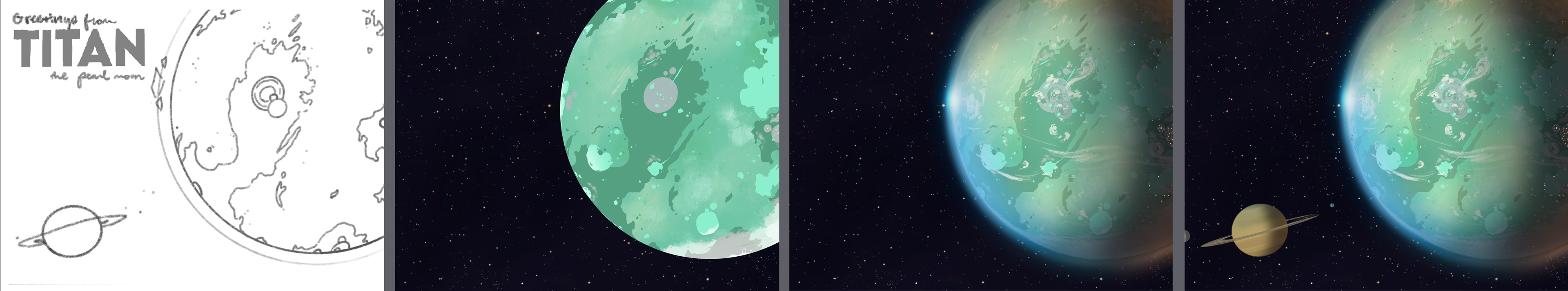 My second remaster of my original series fell to Titan, the Pearl Moon. The piece that originally began the original series, the Titan piece holds a special place in my heart. Continuing this series has led me to create a larger connected universe that some of my pieces fit within, with this one specifically referencing the 2892 Beirut Olympics featured in a piece I made in March 2023. A character design project has led me back to this world as well, inspiring me to expand upon the setting that I find so fascinating.