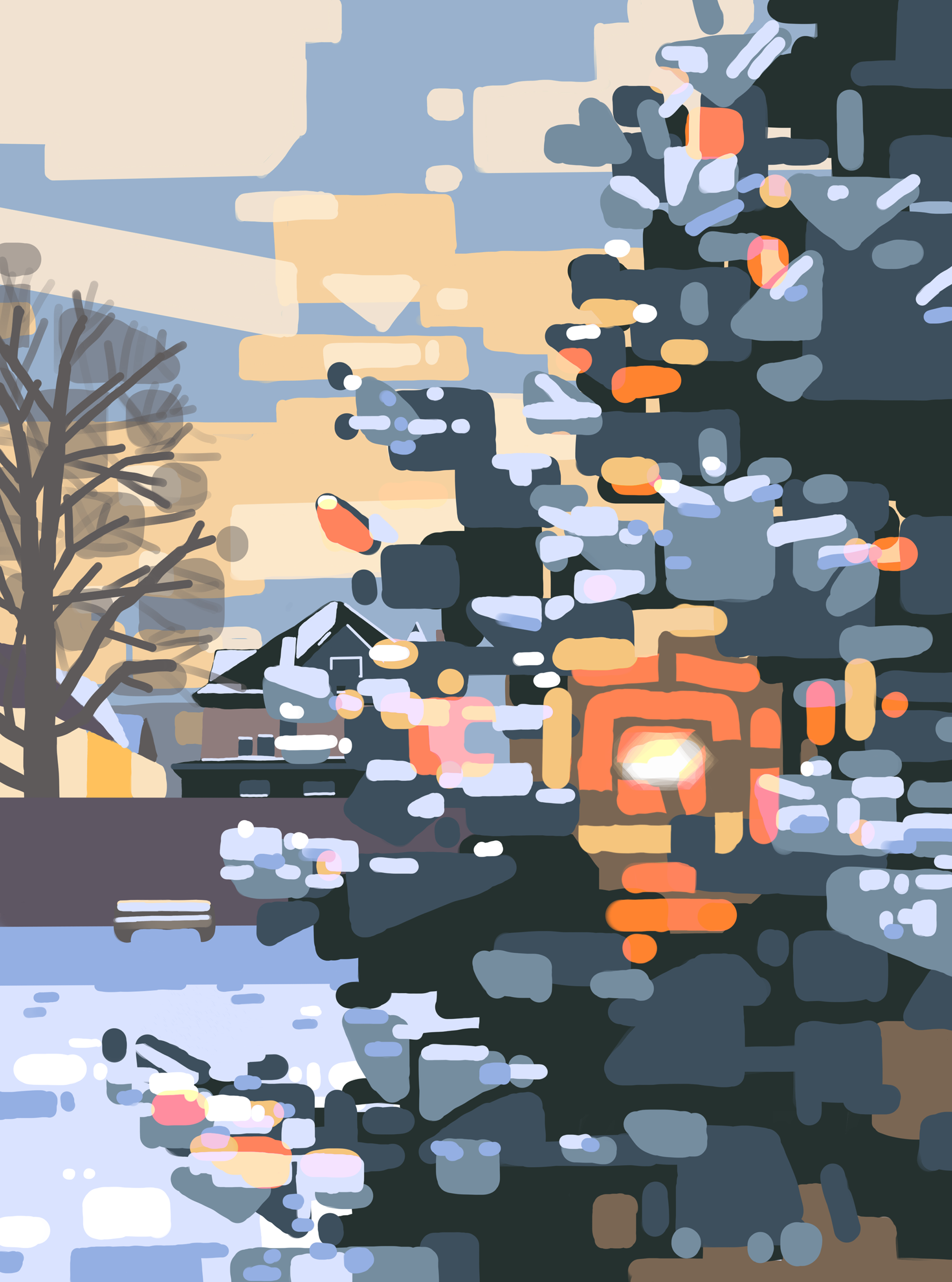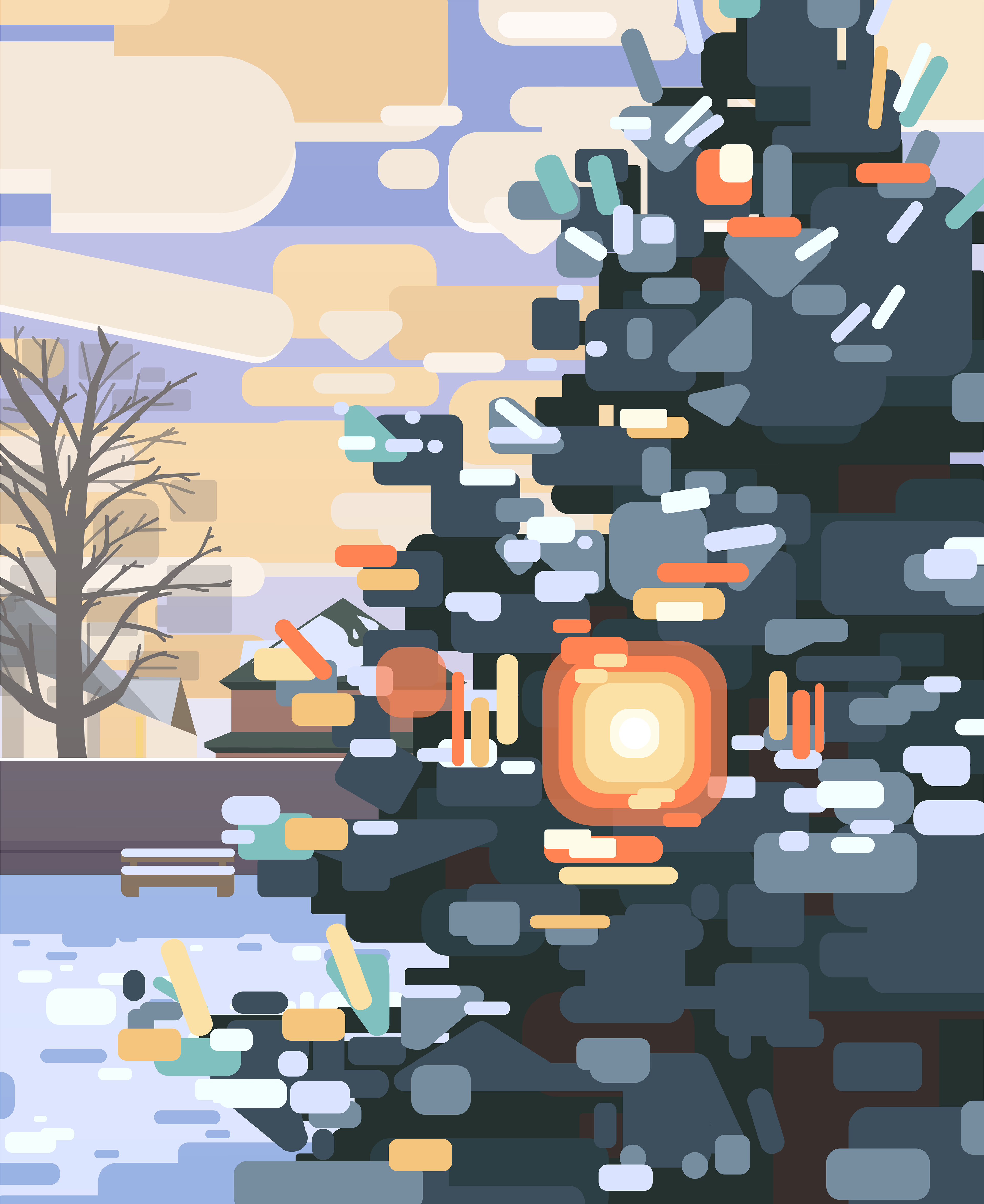 Inspired by 20th-century pictorial modernist artists, I made this piece in the winter of 2021. Realizing that I could better represent what I was going for by making it in Illustrator, I remade it.