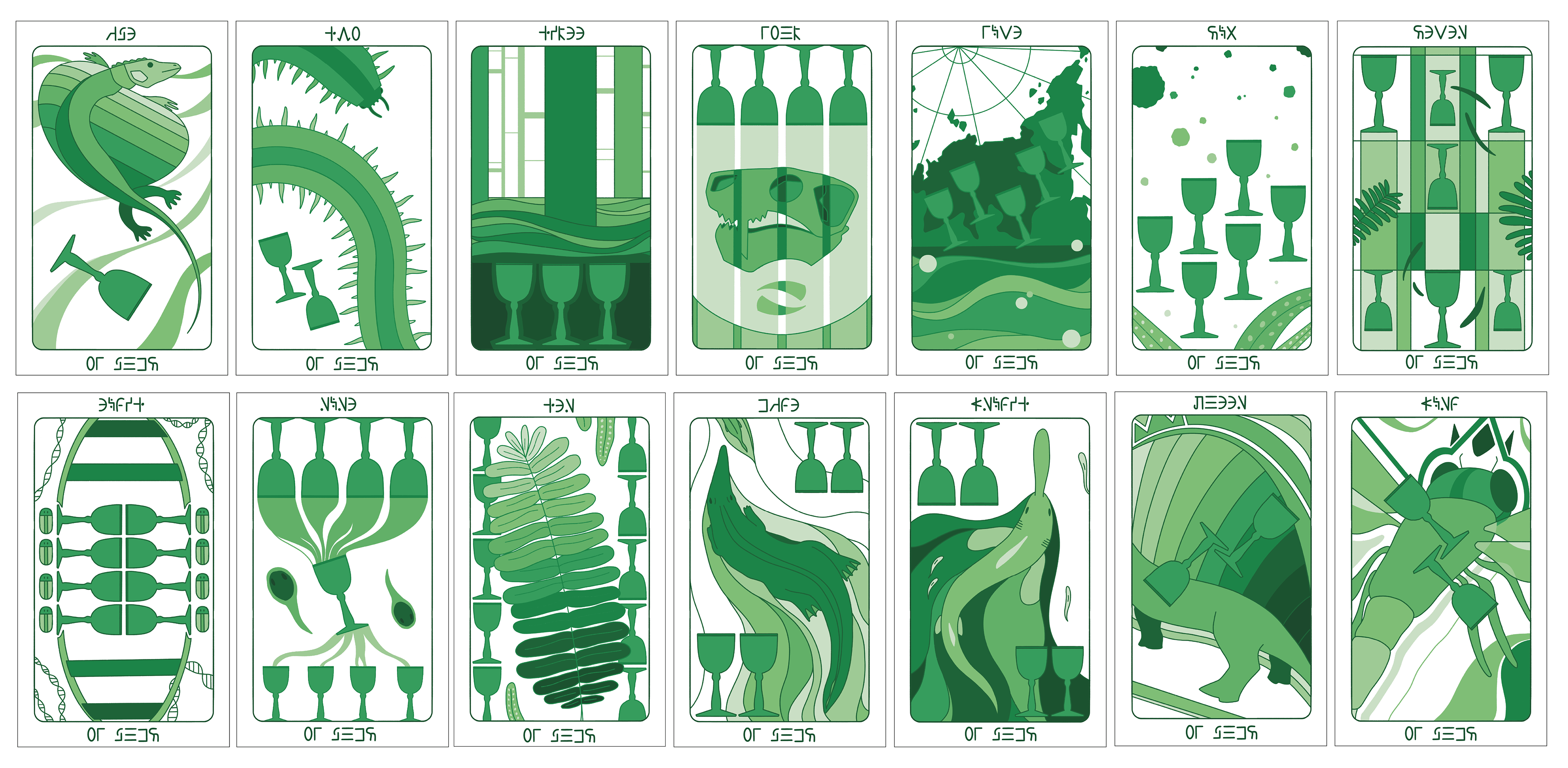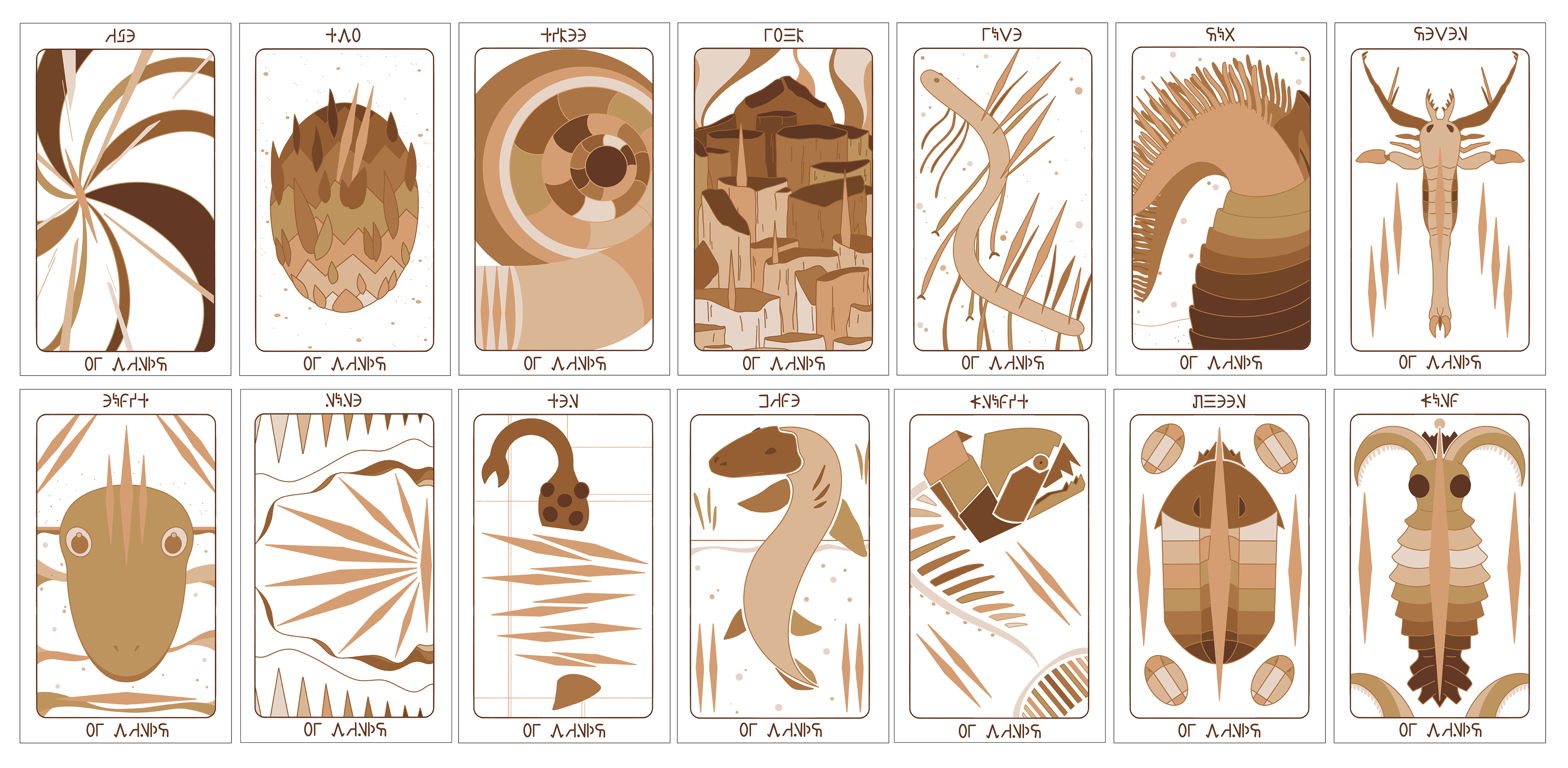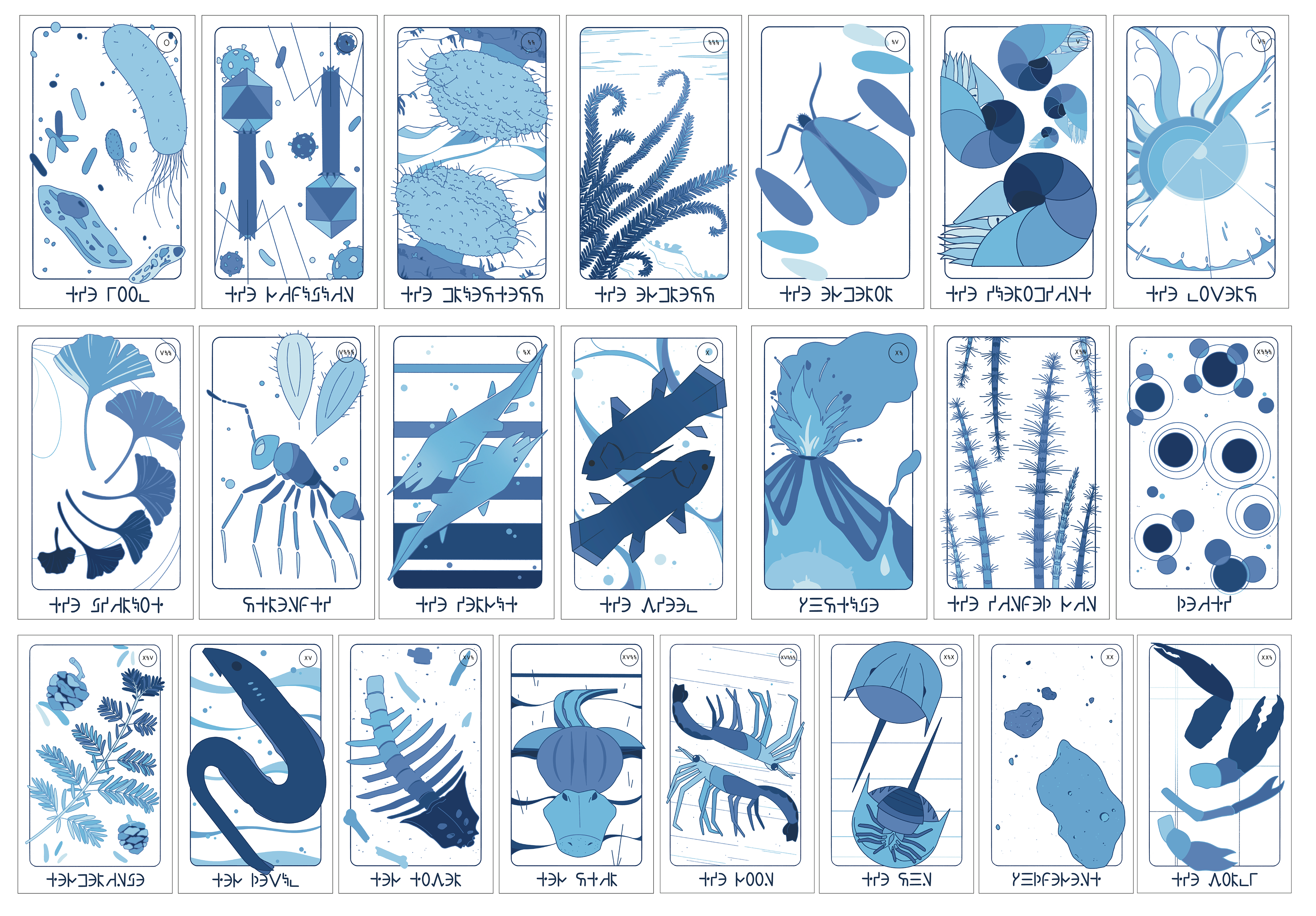Inspired by my passion for paleontology, I produced a tarot card set inspired by both living fossils and regular fossils and concepts. The major arcana came with the concept of living fossils while including abstract cards such as the carbon card and the asteroid card, while later decks cover geologic time frames. The orange deck covers the Cambrian to the Devonian, the green deck covers the Carboniferous and the Permian, and the purple deck covers the age of the dinosaurs. The final section of the complete deck is still in production, but should be done soon.